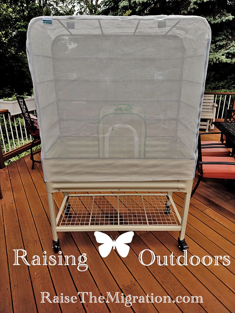 This would have been much simpler if I used parsley cuttings and put them in one or two indoor mesh cages to place inside the outdoor enclosure like this: